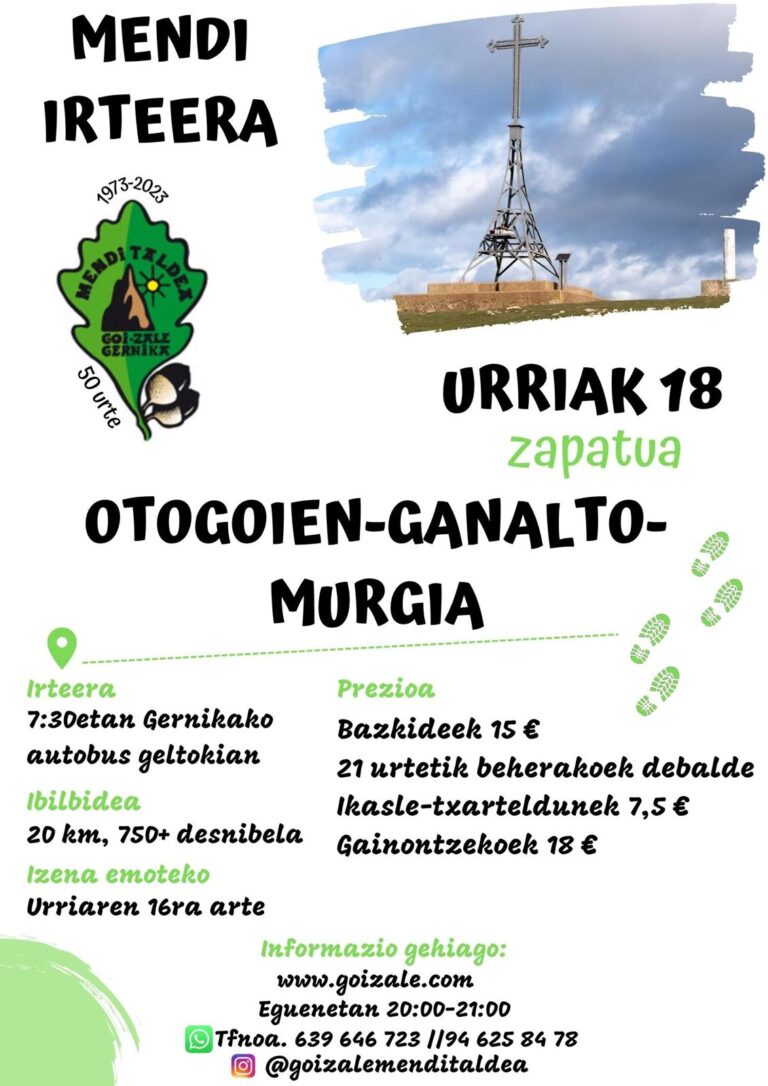 - Irteera: zapatuan, 07:30etan, Gernikako autobus geltokian.