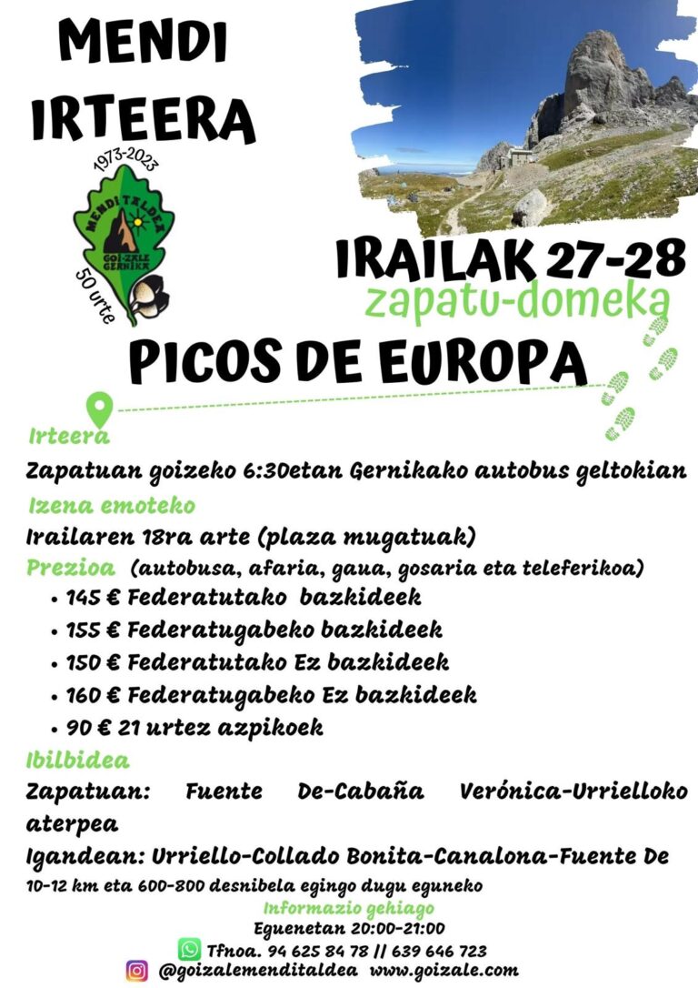 - Irteera: zapatuan, 07:30etan, Gernikako autobus geltokian.